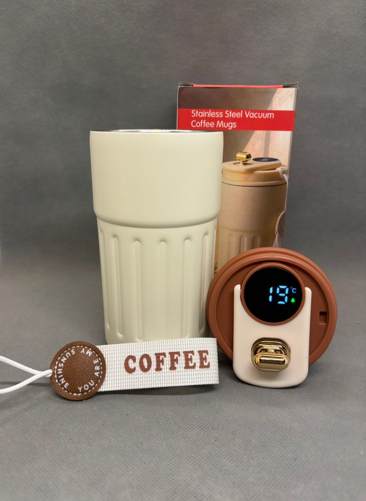 Descubrí la combinación perfecta de elegancia y tecnología con esta taza térmica inteligente de acero inoxidable. Diseñada para los amantes del café y otras bebidas, esta taza no solo mantiene tu bebida a la temperatura ideal, sino que también te permite conocerla al instante gracias a su innovador display LED en la tapa. Su sofisticado color crema y los detalles dorados, junto con la etiqueta "Coffee" incluida, la convierten en un accesorio imprescindible para tu rutina diaria o para un regalo especial.